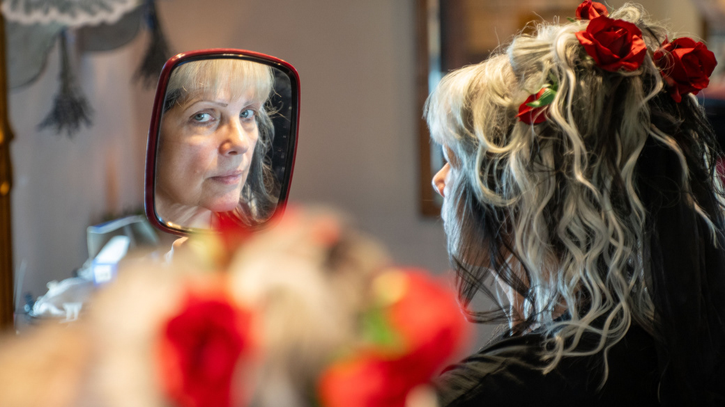 Caroline Pontius examines a frame from the bee colony on RIT campus on Sunday, Sept. 3, 2023, in Henrietta, NY.